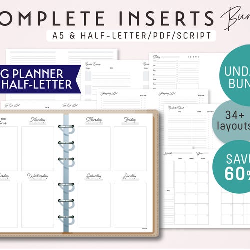 A5 And Half Letter Size Complete Inserts Bundle For Ring Etsy India