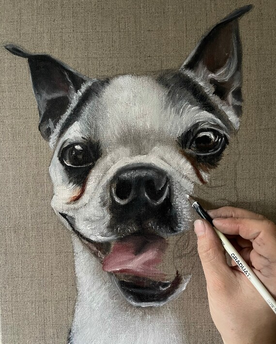 Custom Boston Terrier Portrait Oil Painting Pet Painting Etsy